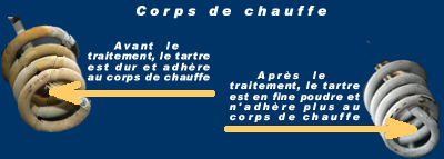 Ne supprime pas le ta rtre, mais le détruit par ionisation en très fine poussière qui n'adhère plus aux tuyaux, corps de chauffe. Il ne modifie pas chimiquement l'eau (ne supprime n'y les sels minéraux, n'y le calcium qui sont des éléments importants pour le corps humain).